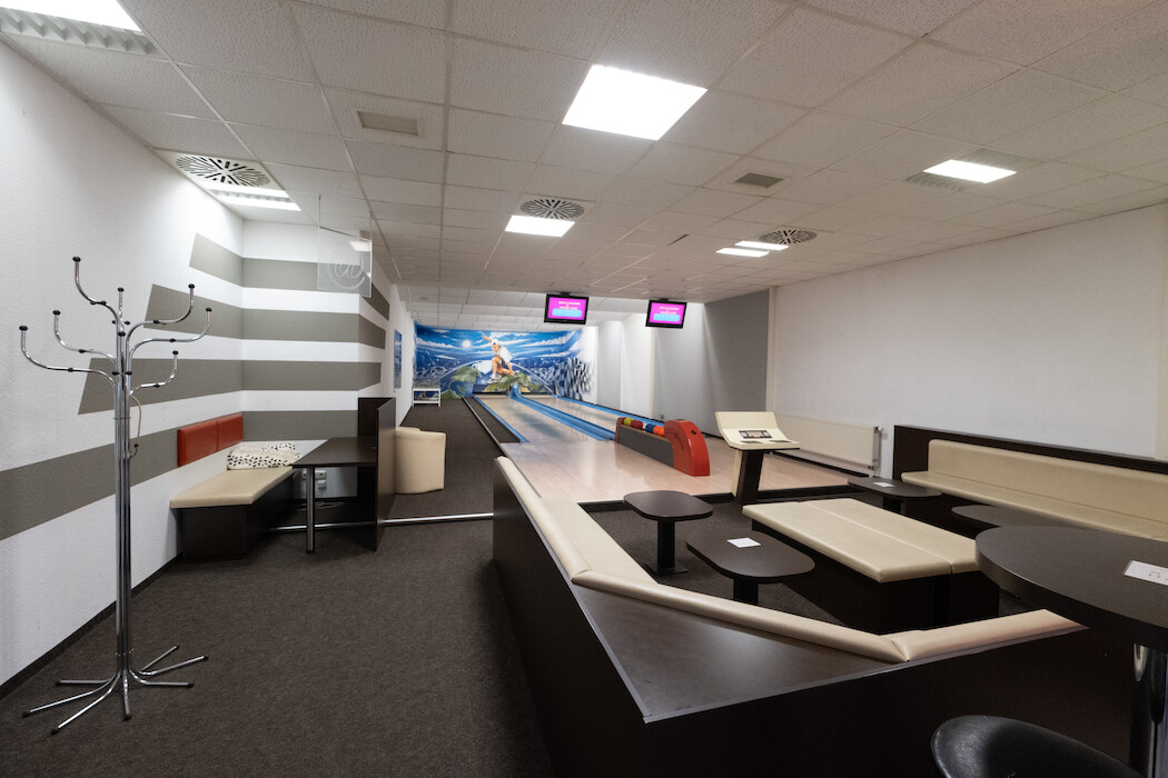 Neben großzügigen Sportbereichen bietet das Objekt voll ausgestattete Bowlingbahnen, Squash- und Badminton-Courts, eine Soccer Anlage, Tennisplätze (Indoor) eine Sauna- und Wellnesslandschaft, moderne Aufenthaltsräume, ein Gastronomiekonzept mit Sitzbereichen und Außenterrasse, sowie eine Fitnessfläche mit modernen Geräten.