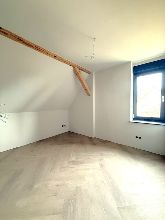 Über eine Treppe gelangt man in das 1. OG. Hier befinden sich neben dem Schlafzimmer, das Bad mit Fenster, Wanne und Dusche, auch 3 Kinderzimmer.